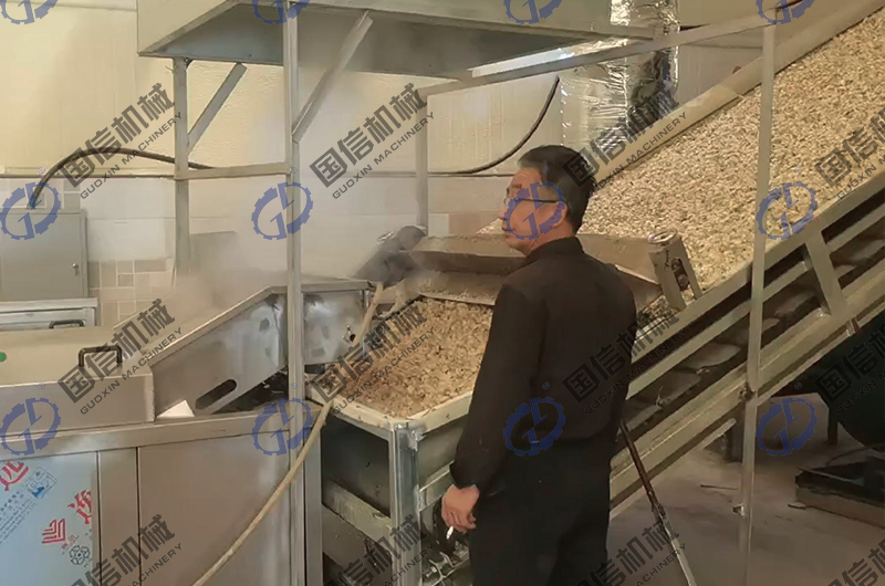 高溫煮燙:煮燙是干燥加工的關鍵環(huán)節(jié),是著色保質(zhì)的保障。高溫煮燙可在不銹鋼(預煮)漂燙殺青機中進行,漂燙蒸煮機的蒸煮時間溫度都可以調(diào)節(jié),蒸煮過程中不需要人員操作,省工省力!百合分季的含淀粉不一樣,蒸煮時間也不一樣,煮燙的時間以原料略軟,掰斷鱗片時有清脆響聲,有較強彈性為度。 高溫煮燙的操作要掌握好,熱燙溫度和時間達不到,在干燥過程中就會氧化褐變;如果熱燙過度,鱗片煮爛,干燥后則鱗片容易破裂或形成魚鱗片,色澤加深,影響制品的外觀質(zhì)量。
